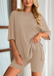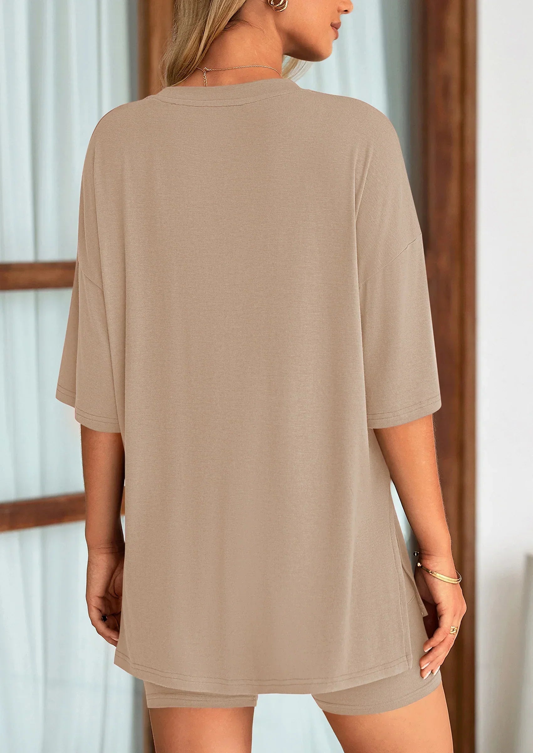 “I bought this two piece set for my trip last month and wore it on the plane — I’ve never been so comfortable while still looking put-together! The fabric is super soft, lightweight, and breathable. The oversized shirt drapes perfectly, and the biker shorts stay in place without digging in. I’ve already worn it for errands and lazy Sundays at home. Definitely ordering more colors!”